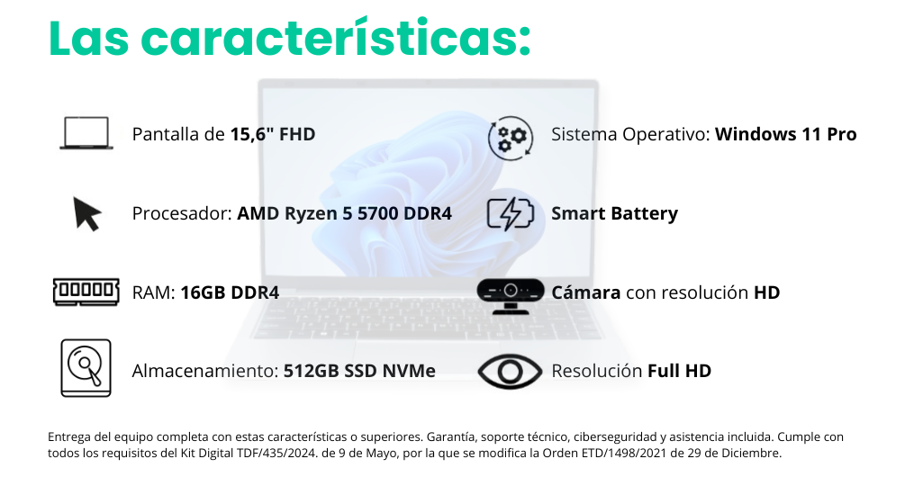 Un almacenamiento SSD mínimo de 512 GB. Además, tus datos estarán protegidos con encriptado, la contraseña será proporcionada por el Agente Digitalizador.